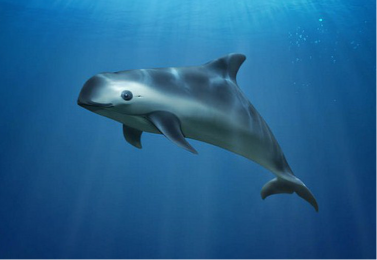 눈 주변에 검은 무늬가 있어서 '바다의 판다'라고도 불리는 돌고래입니다.