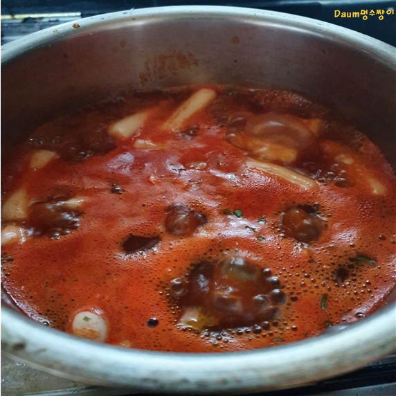 7분정도 끓이니 보글보글 끓더라고요~ 근데 떡이 더 말랑해지면 좋을 것 같고